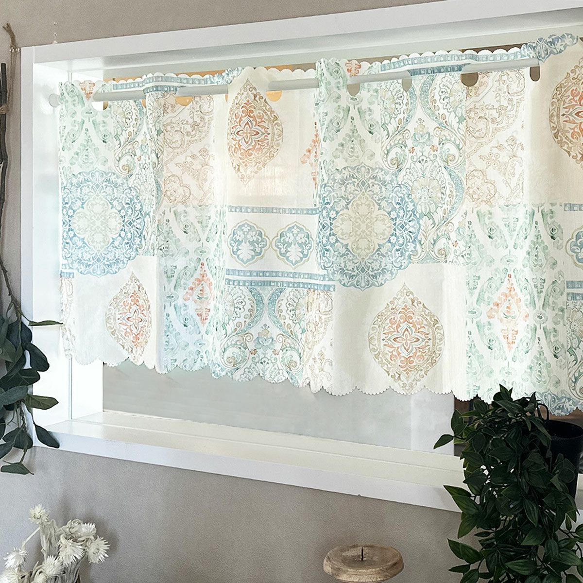 ゆっくりと時間を過ごすお部屋におすすめのカフェカーテンです。