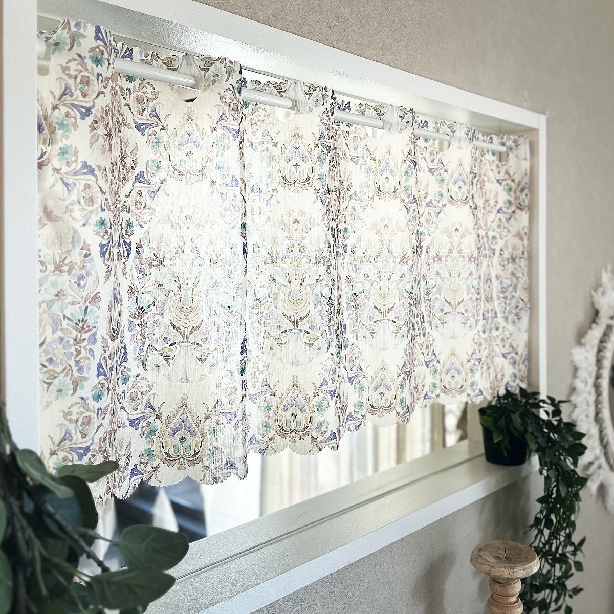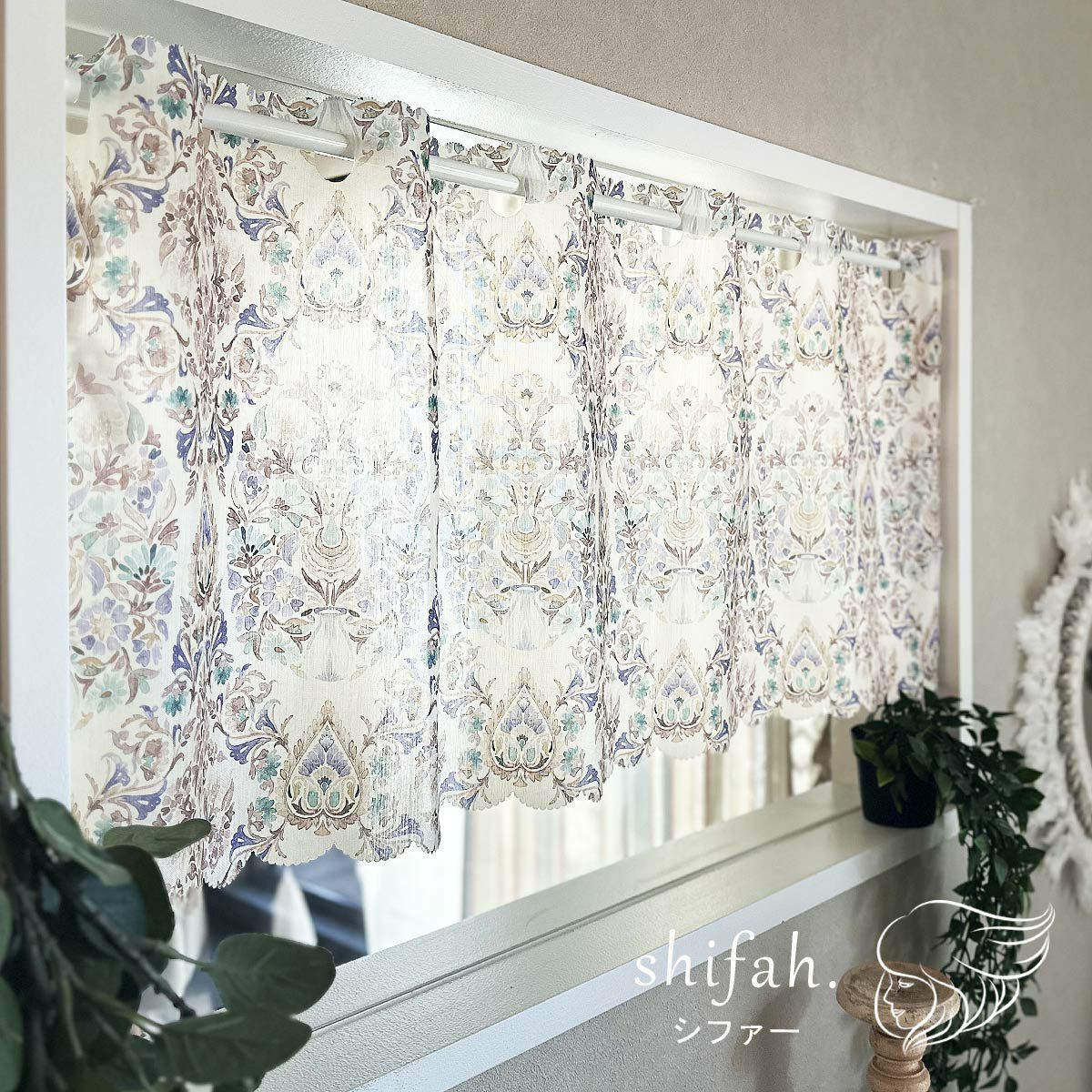 個性的ですが親しみやすいデザインのカフェカーテンです。