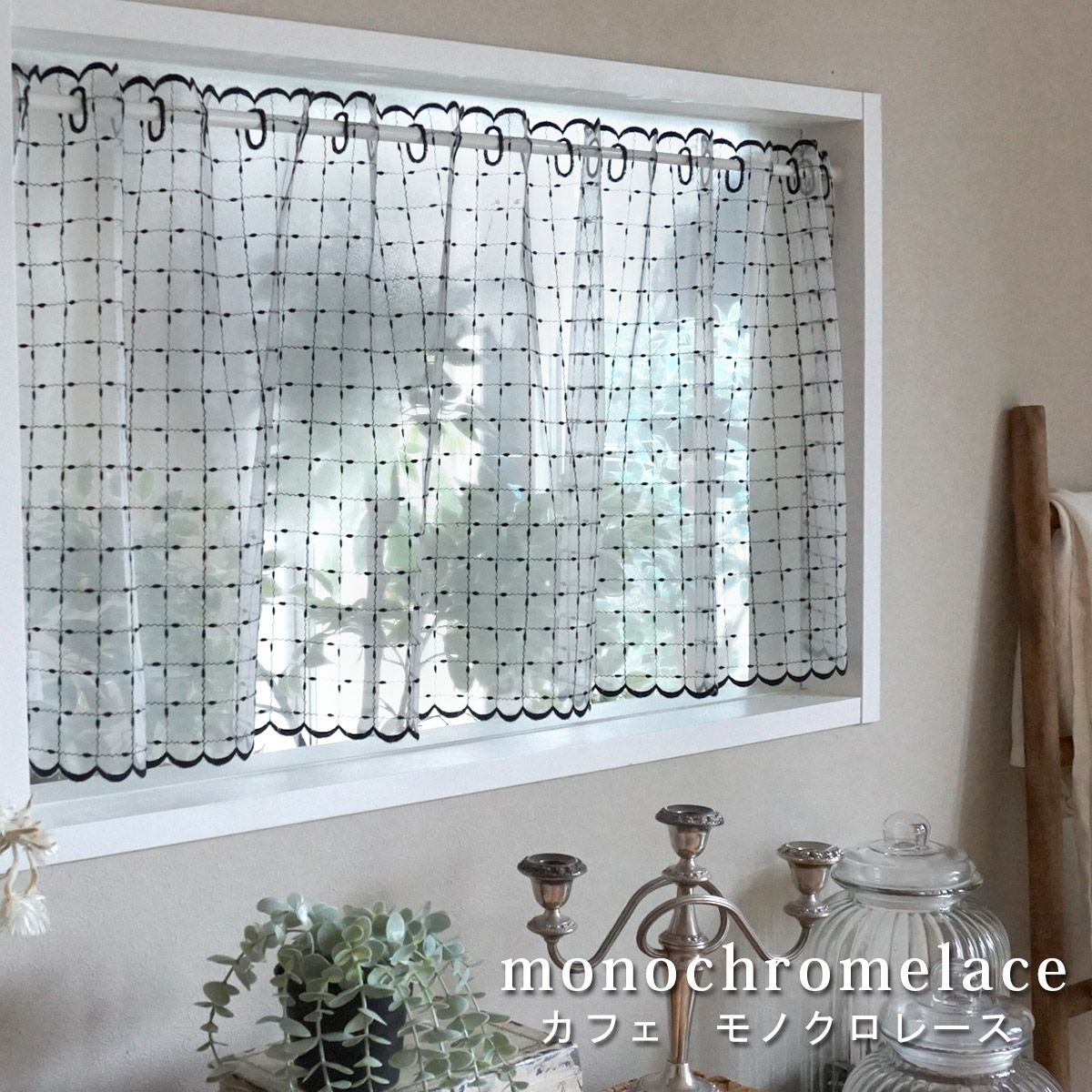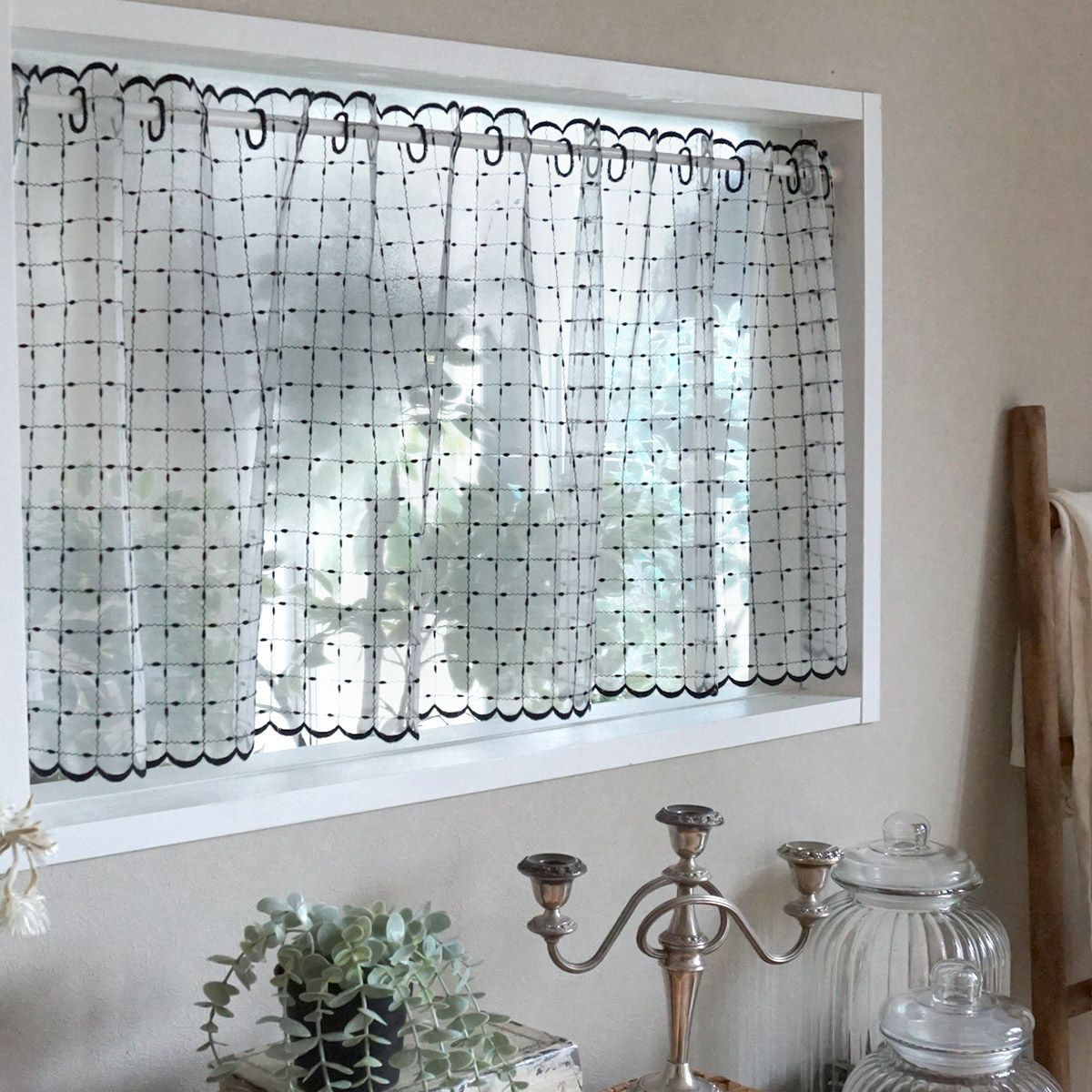 透明感のあるエレガントなカフェカーテンです。