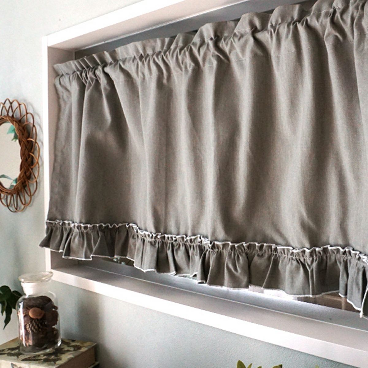 カーテンとお揃いの生地で、小窓にはカフェカーテンのスタイルはいかがでしょうか。