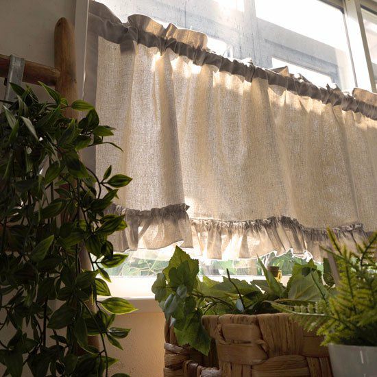 5. 【365lino!】サイズ豊富・リネン50%・13色から選べるカフェカーテン<linolino! -リーノリーノ フリルカフェ ベージュ->