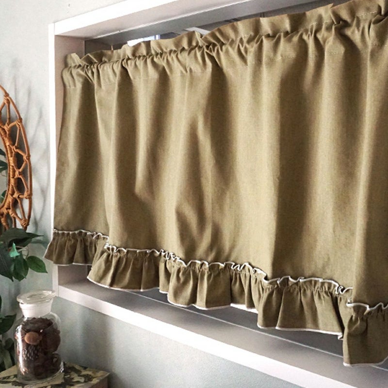 カーテンとお揃いの生地で、小窓にはカフェカーテンのスタイルはいかがでしょうか。