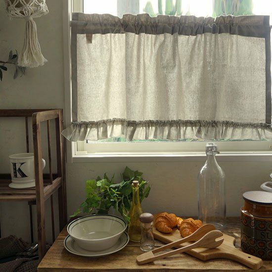 カーテンとお揃いの生地で、小窓にはカフェカーテンのスタイルはいかがでしょう。
