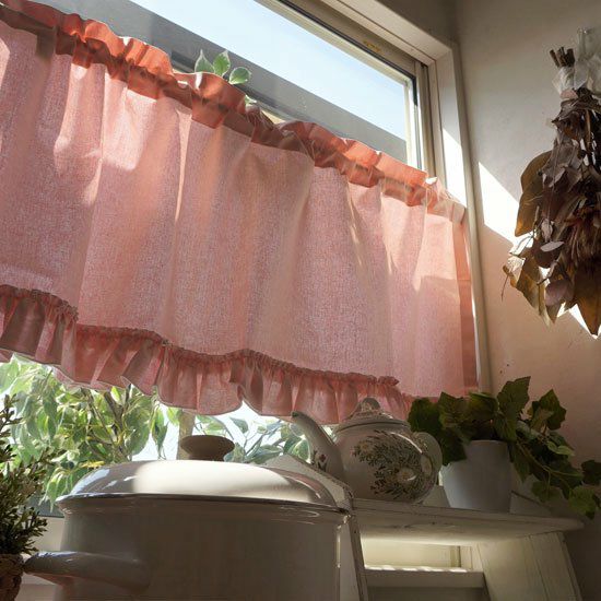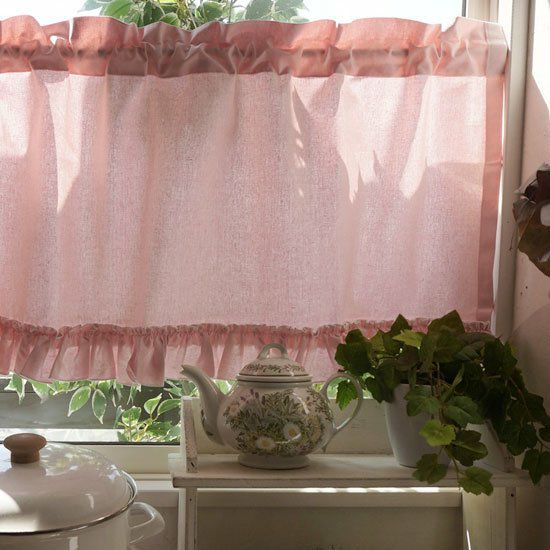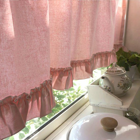 カーテンとお揃いの生地で、小窓にはカフェカーテンのスタイルはいかがでしょう。