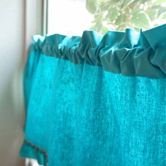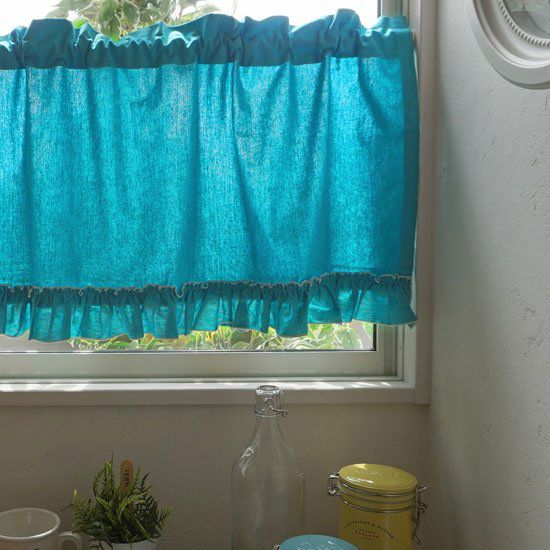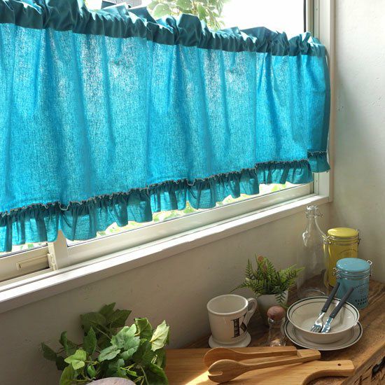 カーテンとお揃いの生地で、小窓にはカフェカーテンのスタイルはいかがでしょう。