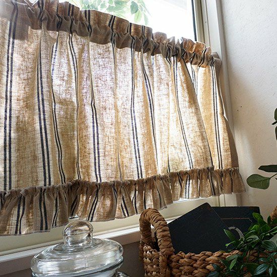 カーテンとお揃いの生地で、小窓にはカフェカーテンのスタイルはいかがでしょう。