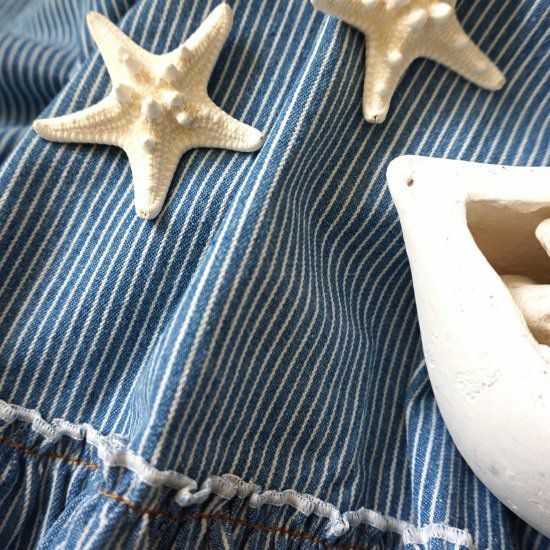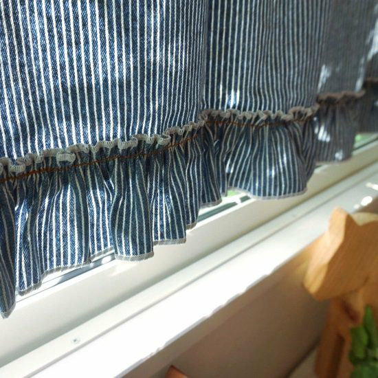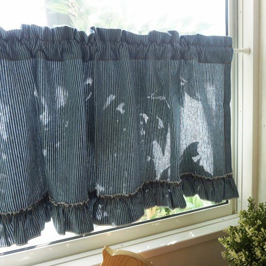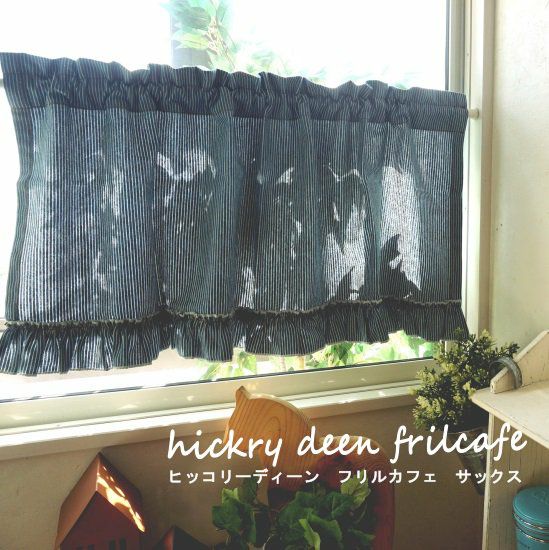 4. 【chiffon doux】■サイズ豊富なカフェカーテン 天然素材100%カーテン <hickudeen fril- ヒッコリーディーン フリル サックス>