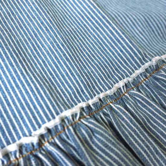 デニム生地は時間の経過とともに風合いや色合いが変化します。