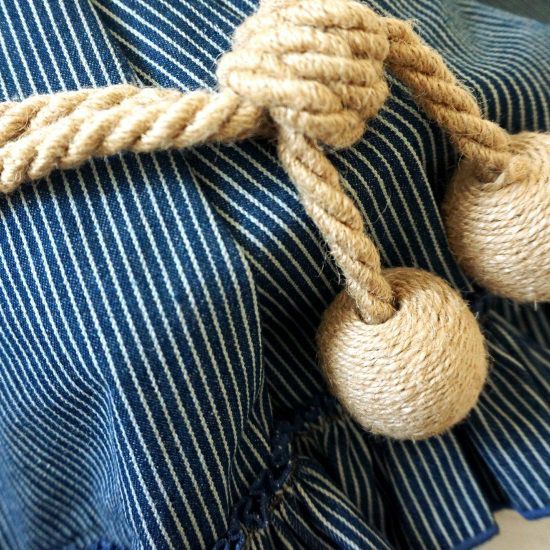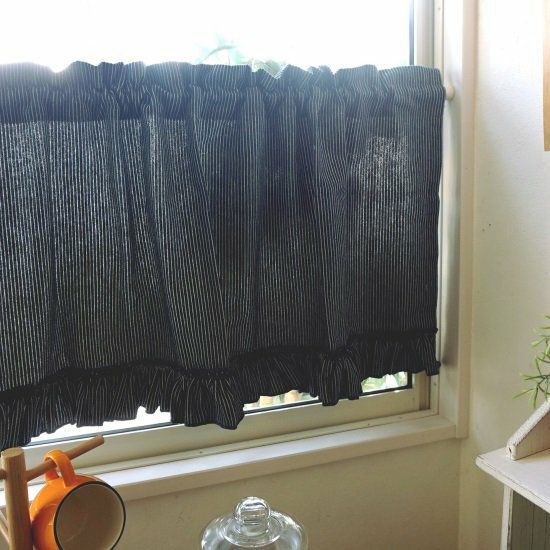 カーテンとお揃いの生地で、小窓にはカフェカーテンのスタイルはいかがでしょう。