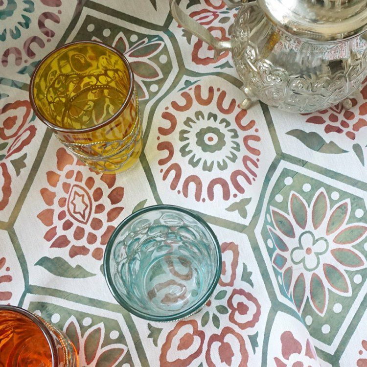 アラビアンな幾何学模様を使ったクッションカバーやラグは欧米諸国で愛されるマストアイテム。