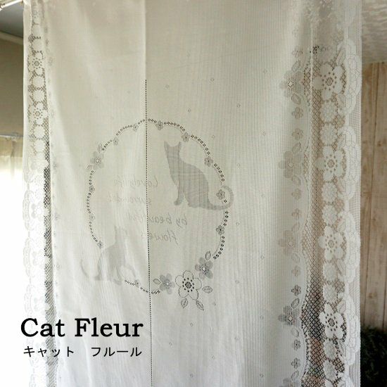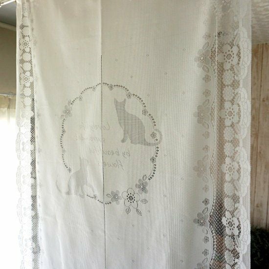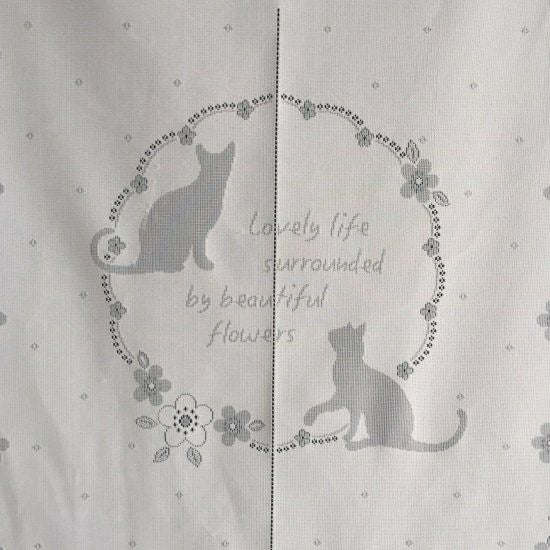 猫のシルエットが可愛いレースのれんです。