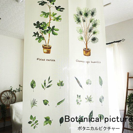 間仕切りにおすすめデザインのれん <ボタニカルピクチャー 85×150>:1サイズ