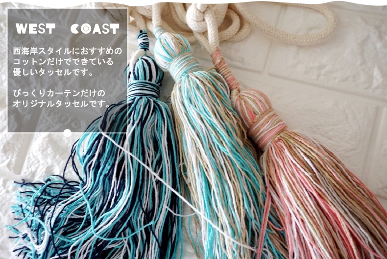 優しいコットンでできた西海岸テイストにぴったりのオリジナルタッセルです。一つ一つ丁寧に手作業で制作されていますので、一つ一つが少しずつですが違う趣があります。