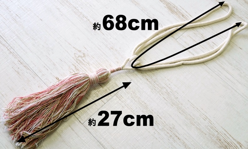 サイズ:ロープ部分(広げた状態で)約68cm 飾り部分:約27cm