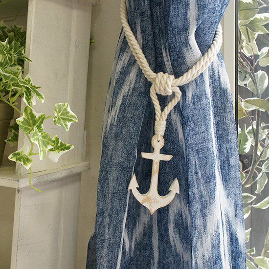 カーテンを束ねる紐部分にはロープを使用し、デザイン性の高い商品に仕上げました。