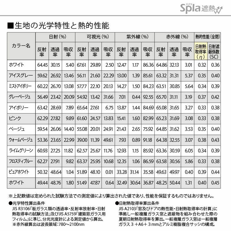 ※ダークブラウンのみ「遮光2級」、それ以外は「遮光3級」となります。
