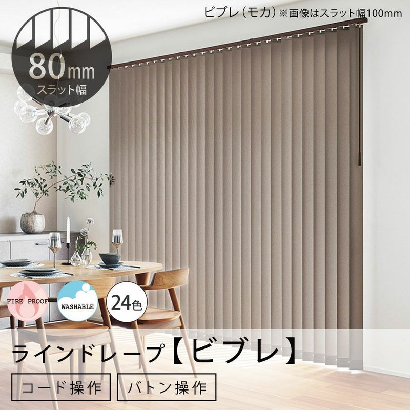 【商品詳細】 スラット幅:80mm 組 成:ポリエステル100% 機 能:防炎・ウォッシャブル 操作方法:バトン操作 または コード操作 付属品:取付金具(ブラケット・ネジ) 必要工具:プラスドライバー 原産国:日本製 ※サイズ指定は1cm単位です。 ※操作方法により納まり(スラットたたみ)は異なります。両側操作は左右どちらでも操作可能ですが、よく使う操作側をご指定ください。 ※取り付け高さのご指定がない場合は、丈(製品高さ)を取付け高さとして製作します。 ※丈(製品高さ)にはブラケットの厚みを含みます。★直付けは除く ※付属の取付ビス(木ネジ)はサービスビスとなります。ビスの長さが足りない場合は、別途設置場所に応じたものをご用意ください。 取付ビスについて詳しくはこちらをご参照ください。 ★【カーテンボックスに取付け】の場合、事前に取付可能な奥行きがあるかどうかをご確認ください。 詳しくは【取付け方法】をご参照ください。 取付方法や採寸・ご注文方法でご不明な点がありましたら、お電話ください!