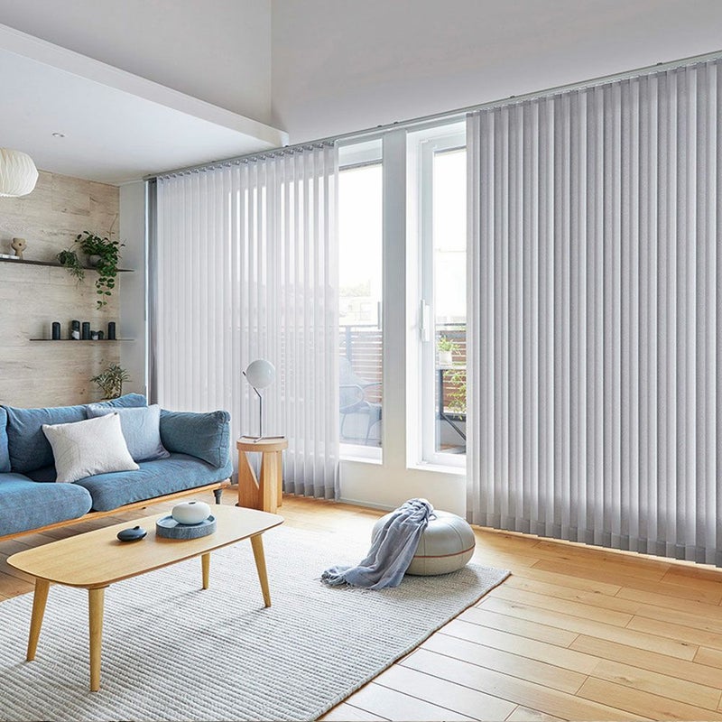 腰高窓から間口の広い窓まで幅広いサイズに対応できるタテ型ブラインド【ラインドレープ】のペアタイプ。