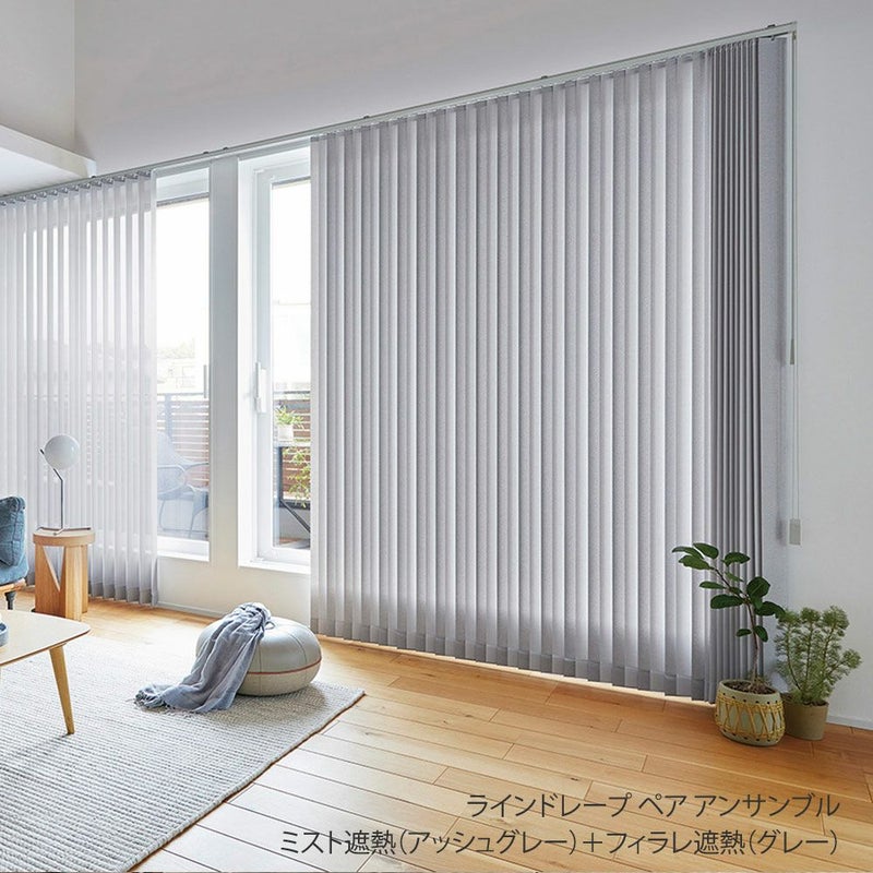 タテ型ブラインド【ラインドレープ】ラインドレープ ペア アンサンブル/ミスト遮熱(アッシュグレー)+フィラレ遮熱(グレー)