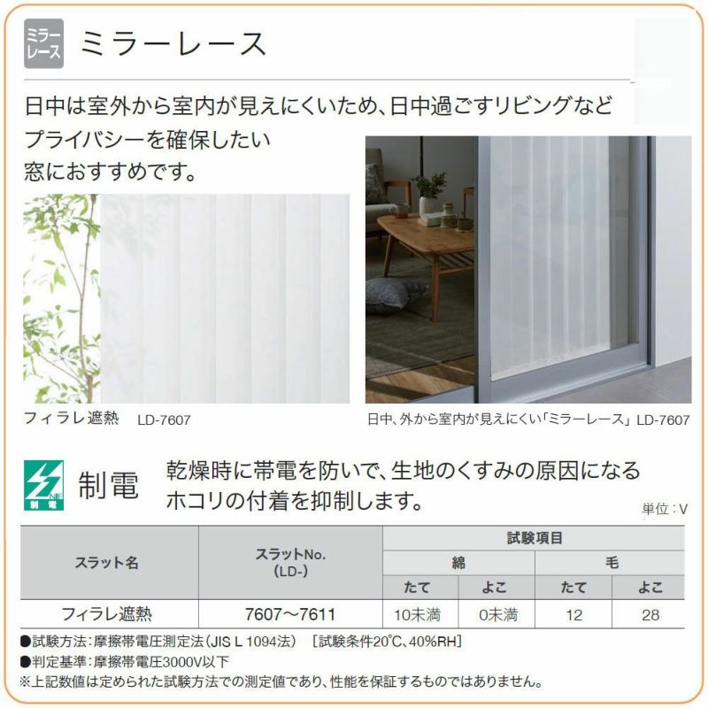 レースの「フィラレ遮熱」は日中は外から室内が見えにくいミラー効果があります。しかもUVカットにホコリが付きにくい制電効果も。