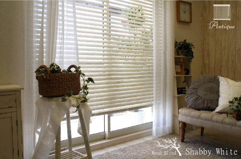 アンティークウッドブラインドとフロントレースカーテンのコーディネートです
