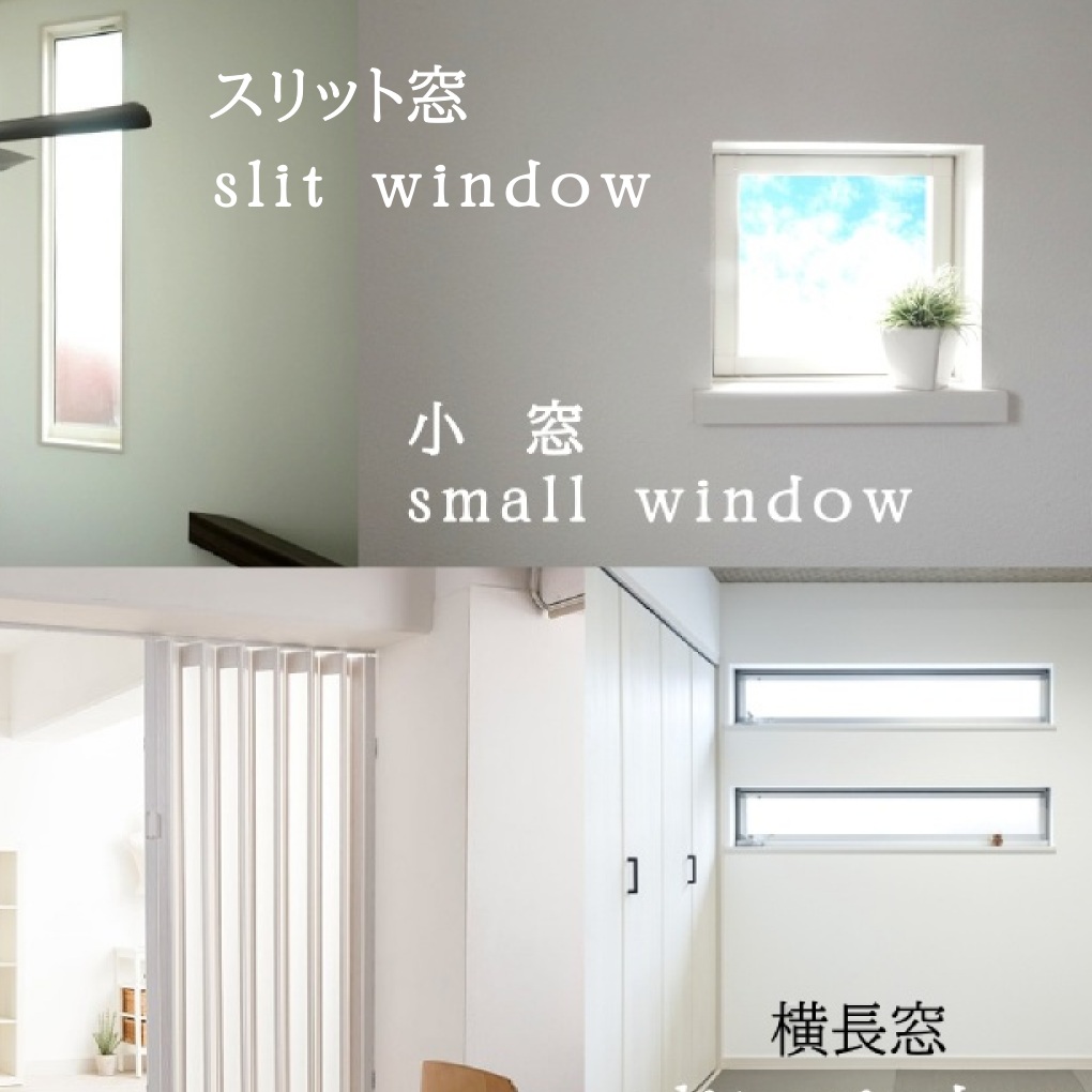 スリット窓にはロールスクリーン、大きな窓にはカーテンで色をリンクしてコーディネート