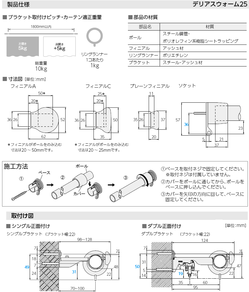 送料無料【タチカワブラインド】チーク柄の木質調装飾レール<デリアスウォーム25 フィニアルA>~3.1m対応※代引不可