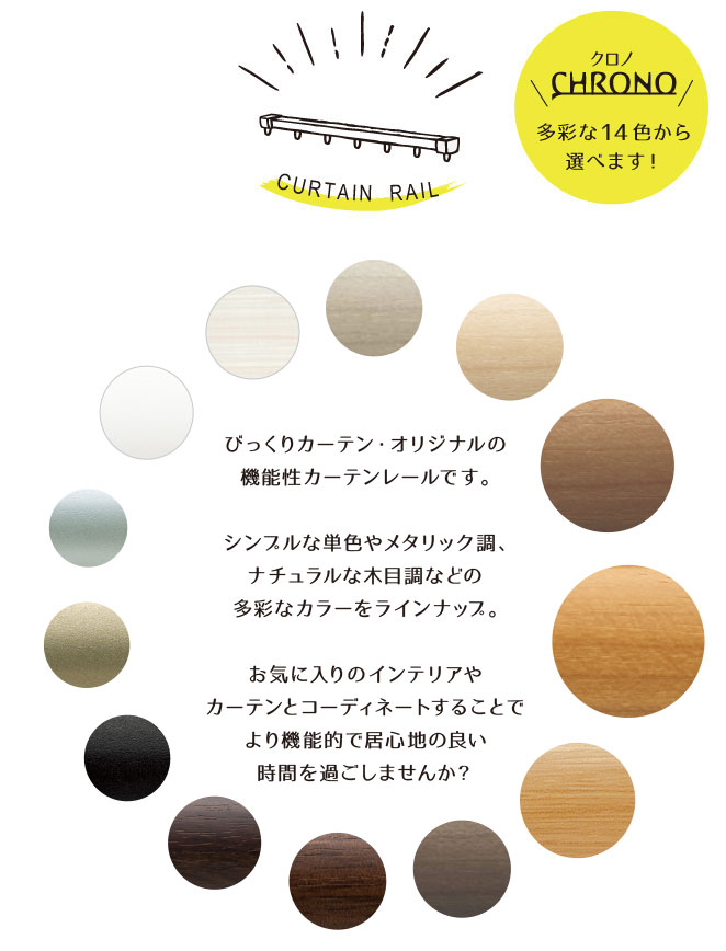![]() カラー豊富なオリジナル機能性カーテンレール<クロノ シングルセット ~4.0M対応> |
