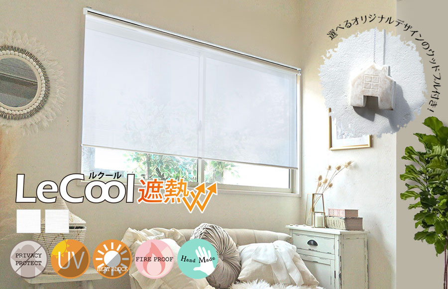 シンプルな遮熱生地だからこそ、当店限定の可愛いデザインウッドプルをあわせれば、組み合わせて選ぶのがもっと楽しいロールスクリーンに!