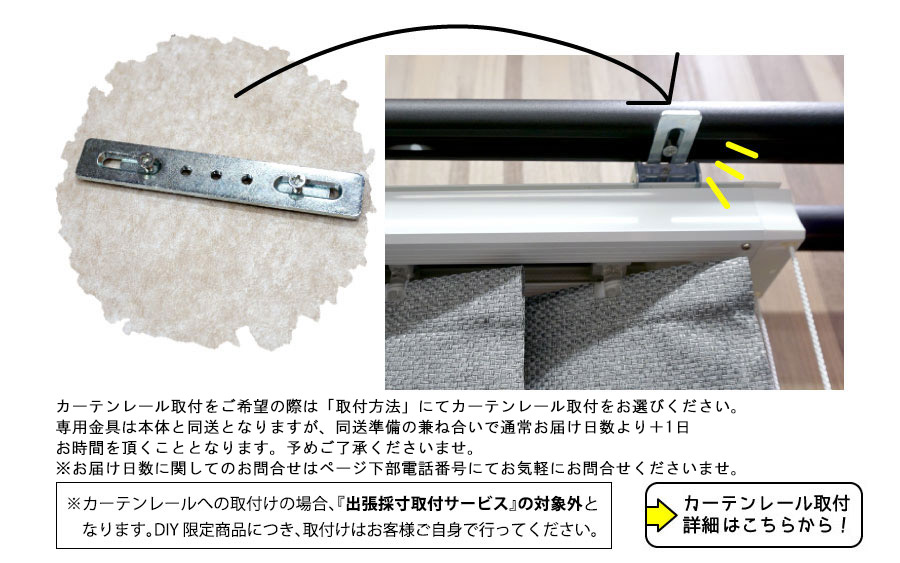専用の取付け金具を使用することでカーテンレールに取付けが可能になりました。