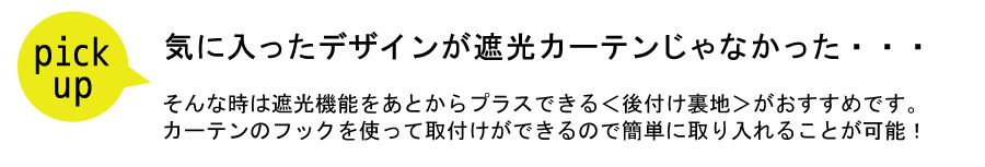 お持ちのカーテンに取付できる裏地です。カーテンの保護・遮光・断熱などの機能をあとからプラスできます!