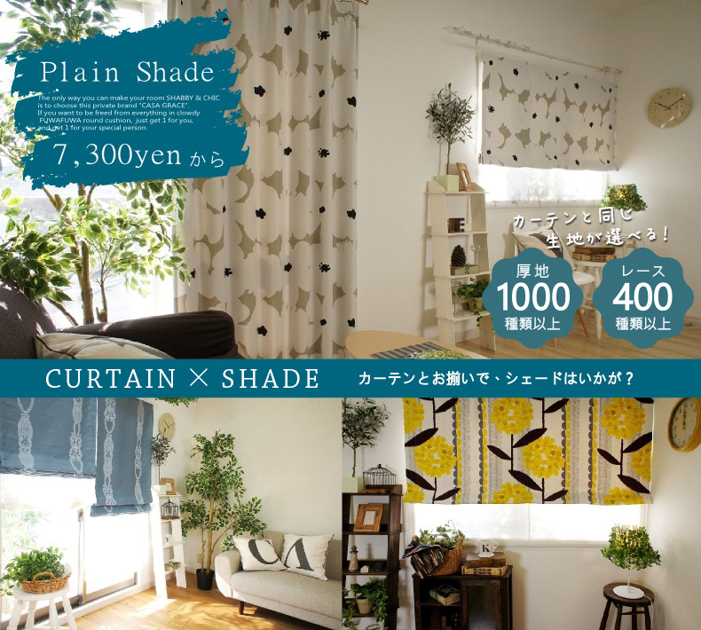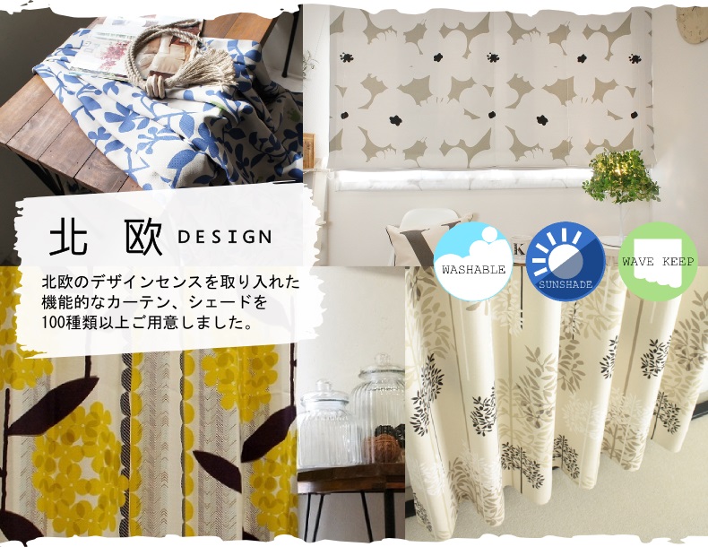 びっくりカーテンの北欧デザインカーテンは何と480種類以上!しかも、同じ生地でシェードも 作成出来ちゃいます。