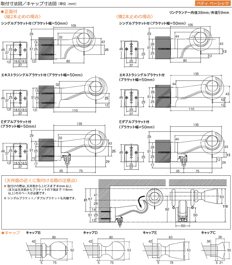 送料無料★日本製・天然木ならではの温かみのある木製レールの定番<ベティ ベーシック>正面付【Bセット】~3M対応