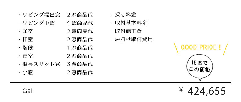 ※窓の高さや状況により、+4400円以上になる場合がございます。