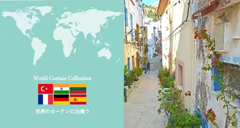 世界各国から直輸入した生地をカーテンにお仕立てした当店のプライベートブランドです。