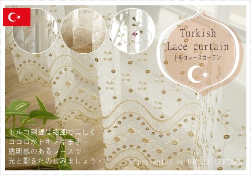 トルコ刺繍レースカーテントルコのレースカーテンはその繊細でエレガントな刺繍の表現でとても有名です。