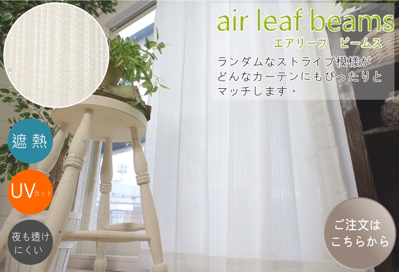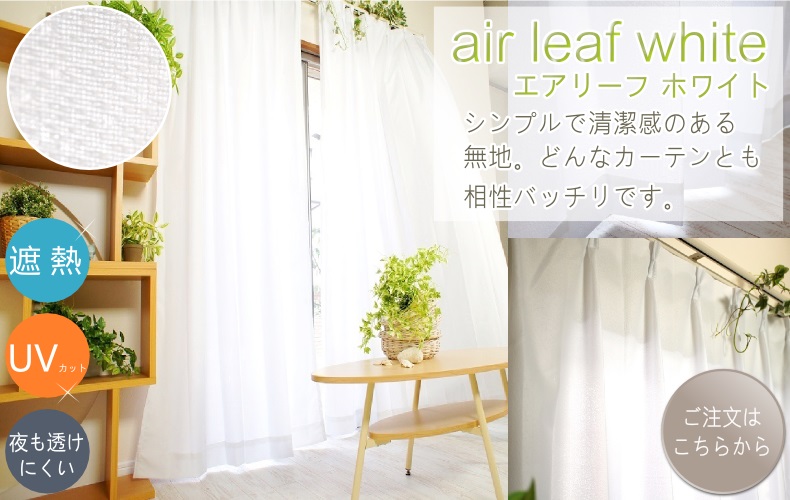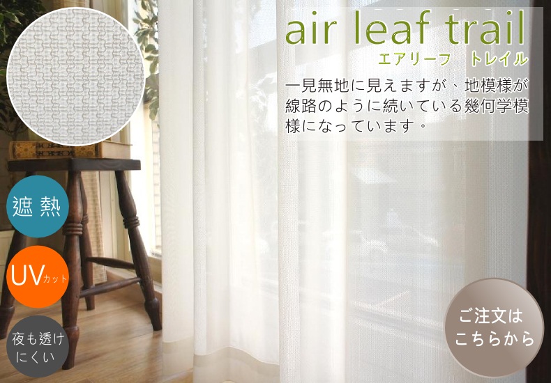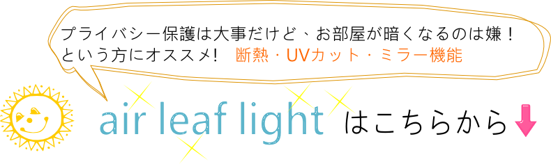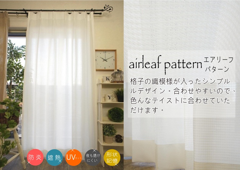 ※ご注意: エアリーフは、遮像レースカーテンのため、お部屋の中から外の景色も見えにくくなります。お部屋の中から外の景色が見たい場合、夜も透けにくいカーテンはございませんので、予め御了承下さいませ。