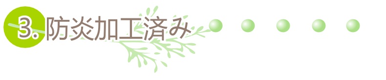 「防炎=燃えない」は、間違いです。防炎加工とは、炎が燃え移った時に爆発的に燃え広がらない加工のことを指します。このことで、一刻を争う火災の最中、防炎未加工品に囲まれている場合よりも炎が燃え広がるまで約5分から8分の猶予が出来るということです。びっくりカーテンの防炎加工は、洗っても落ちない防炎機能が付与されています。