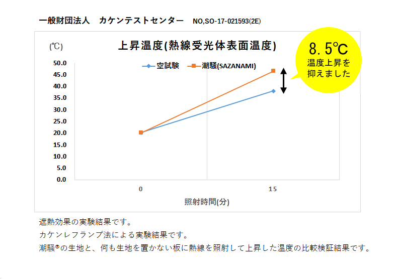※帝人フロンティア社の「潮騒(R)」に、遮像効果があるわけでは無く、「潮騒(R)」繊維を生地に織り上げる際の、当店の独自の製造法により遮像効果を実現しています。