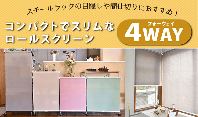 送料無料★スチールラックに取付できるコードレスのコンパクトロールスクリーン【4WAY フォーウェイ<ヘリンボーン>】※代引不可