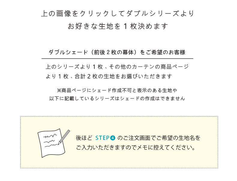 ※個別の商品ページにシェード作成不可の記載がある生地についても作成が承れません。