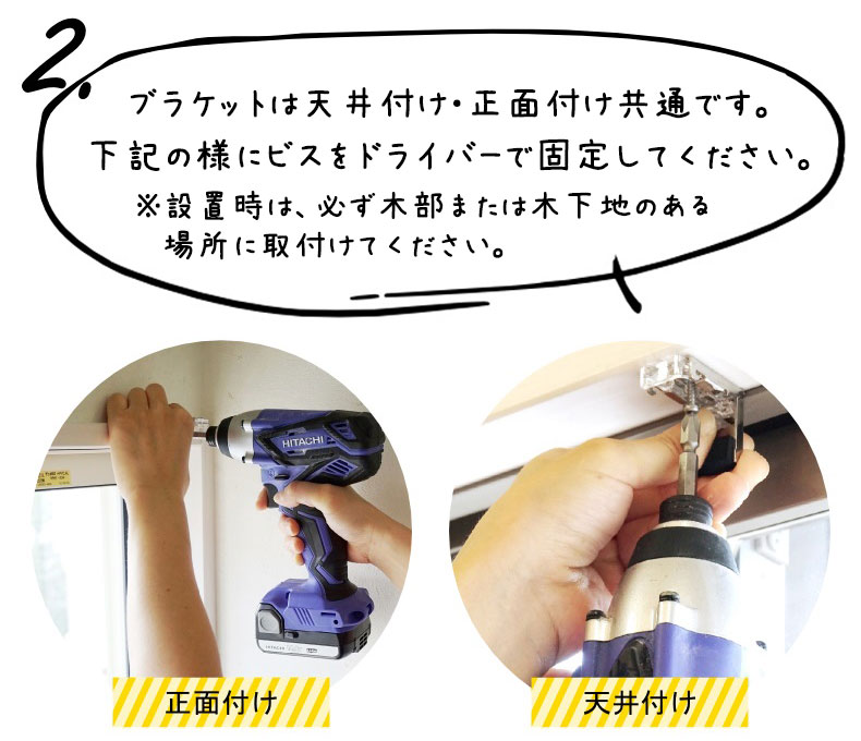 以降(3)~は、このページの上の方に記載の標準仕様の取付け方法をご参照ください。