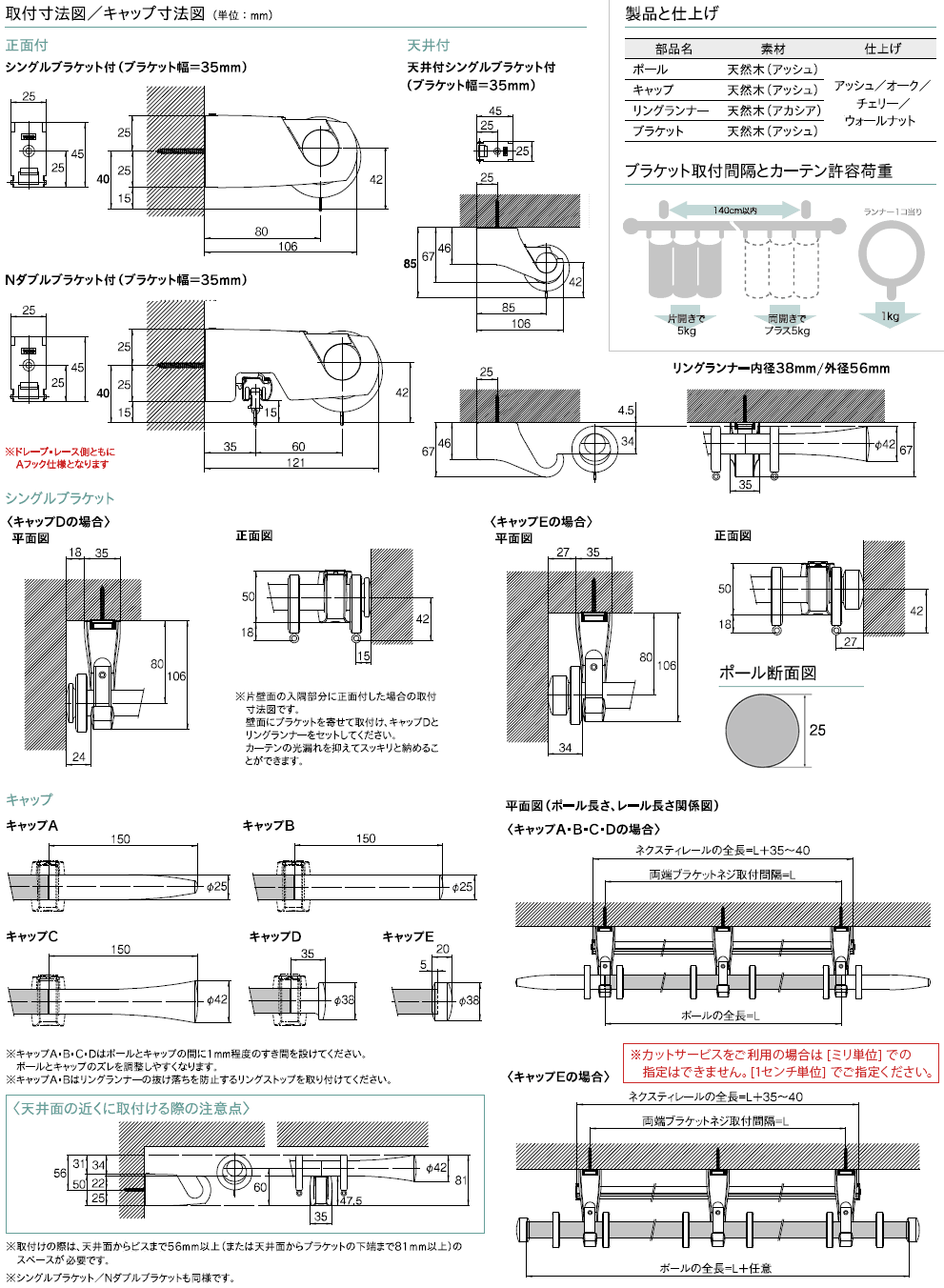 サイズオーダー可能・天然木使用・北欧テイストの装飾カーテンレール