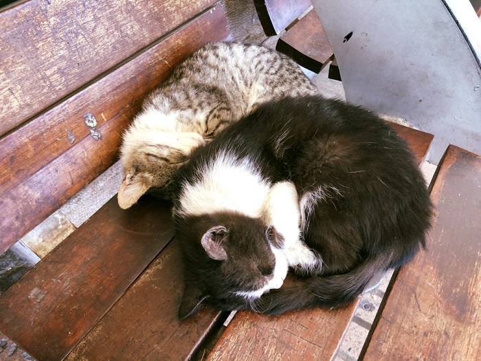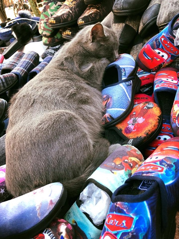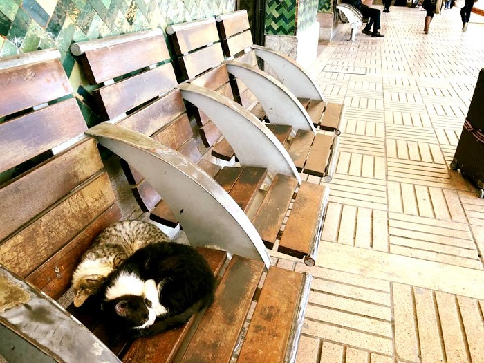 実は、駅で寝ているんだニャ~ン♪ みんな、そっとしておいてくれる優しい国なんだニャ~。