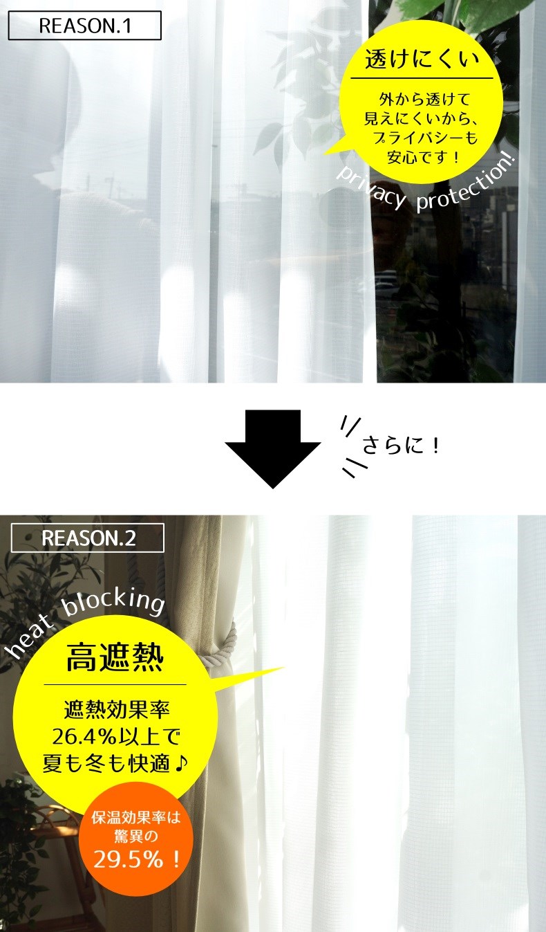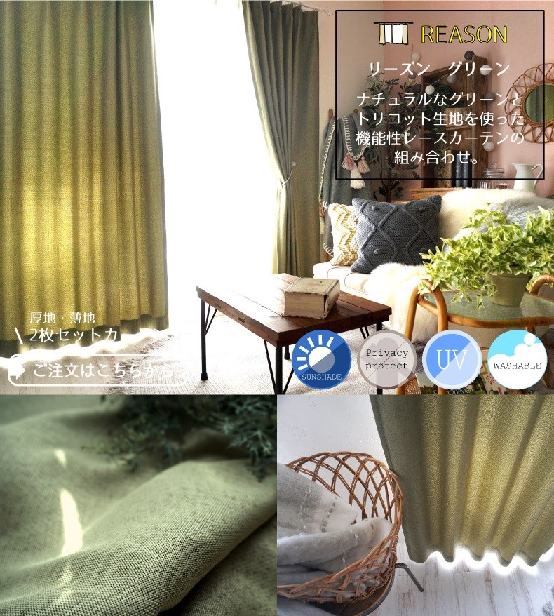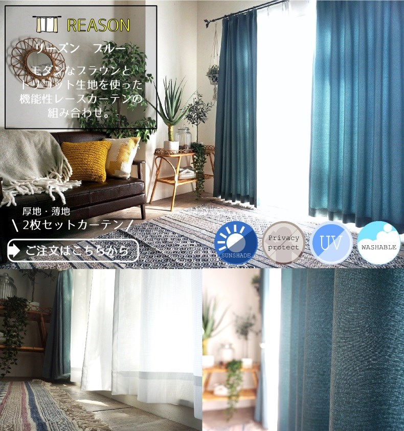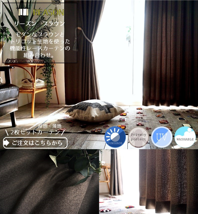 厚地カーテンとレースカーテンが2枚セットになって、お買い得です!