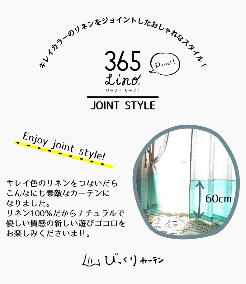 パステルリネン。60cmのジョイントがとってもおしゃれです。 お買い得価格が最大の魅力です!