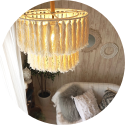 バリ島から直輸入したコットンフリンジ付き ペンダントライト。びっくりカーテンだけの オリジナルデザインです。