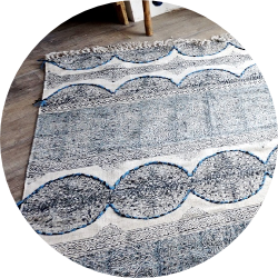 インドの伝統的なプリント製法「ブロックプリント」 で丁寧に手作業でデザインされたコットンラグ。BOHOスタイルとの コーデにおすすめです!