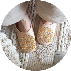 モロッコから直輸入したナチュラルでは着心地の良い バブーシュ。モロッコの伝統的なスリッパです。 BOHO空間にピッタリのデザインです!