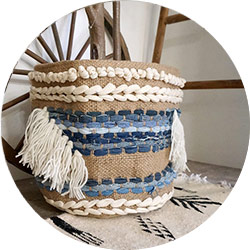 鉢カバーや小物入れにおすすめのハンドメイドバスケット。フリンジやモコモコがついたBOHOスタイルにおすすめのバスケットです!